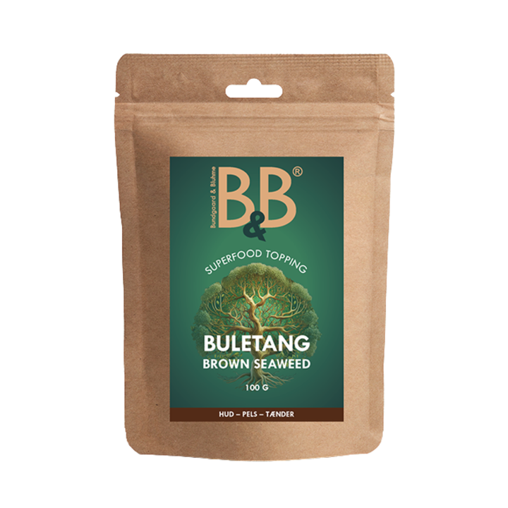 Blæretang, også kjent som knöltang, er en næringsrik havtang som er særlig kjent for sin effekt på tannhelse og munnhygiene hos hunder. Men det stopper ikke der – denne lille algen er proppfull av vitaminer, mineraler og antioksidanter som også gir huden, pelsen, fordøyelsen og immunforsvaret et solid boost 💪🐾